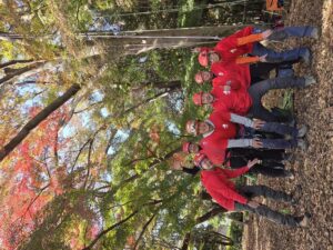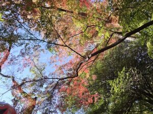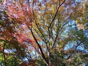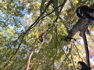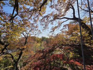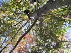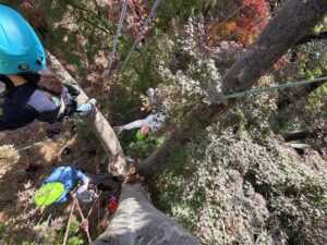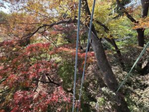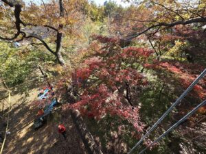 モミジやケヤキの紅葉がとても奇麗で、樹上から眺める景色は最高でした。