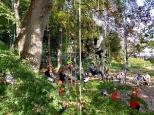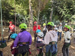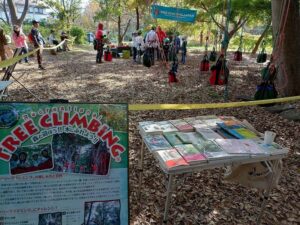 ケヤキを中心とした樹木のお話を20分(byみやび)、ツリークライミング体験会70分に移りました。